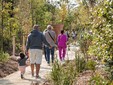 Oltre 3.500 alberi e 1.500 arbusti sono stati piantati, privilegiando specie mediterranee giovani e resistenti per affrontare le sfide climatiche future. Sentieri, radure, giardini d’acqua e una bambouseraie disegnano ambienti diversi, pensati per favorire la biodiversità.
