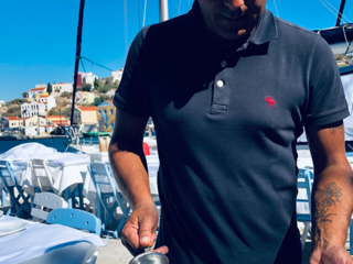 Il porto è la lente attraverso cui tutto si legge. Le imbarcazioni oscillano in un movimento continuo, e il Meltemi — vento caldo dell’Egeo — regala leggerezza ai pensieri. Le sedie rivolte al mare puntano tutte nella stessa direzione, come se l’isola avesse un’unica via di fuga: l’orizzonte. Una viaggiatrice sola, a un tavolo un po’ defilato, osserva in silenzio. Qui si guarda più di quanto si parli. Un uomo apparecchia i tavoli di una taverna: si muove piano, con la calma di chi conosce il valore del tempo e non gli oppone resistenza. Quando si ferma, accenna un sorriso e dice soltanto: «Qui non cambia nulla, è questo il bello». Non aggiunge altro. È abbastanza. In quella frase si condensa la filosofia del luogo: non accelerare, non fingere, non essere altro rispetto a ciò che si è. Il pesce, in tavola, arriva quasi senza mediazioni. Crudo o appena scottato, con olio, limone e capperi carnosi. Il resto è vento e pane da scarpetta. Non c’è scenografia, non c’è narrazione di supporto: si mangia guardando il mare e lasciando che sia il piatto a parlare. Nell’ora di pranzo, Kastellorizo riduce tutto a pochi gesti essenziali.