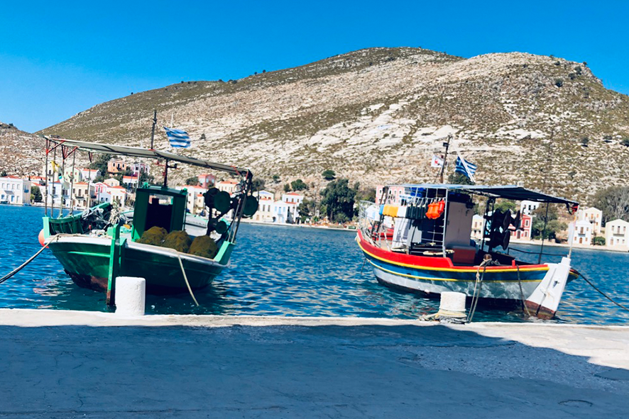 Il porto è la lente attraverso cui tutto si legge. Le imbarcazioni oscillano in un movimento continuo, e il Meltemi — vento caldo dell’Egeo — regala leggerezza ai pensieri. Le sedie rivolte al mare puntano tutte nella stessa direzione, come se l’isola avesse un’unica via di fuga: l’orizzonte. Una viaggiatrice sola, a un tavolo un po’ defilato, osserva in silenzio. Qui si guarda più di quanto si parli. Un uomo apparecchia i tavoli di una taverna: si muove piano, con la calma di chi conosce il valore del tempo e non gli oppone resistenza. Quando si ferma, accenna un sorriso e dice soltanto: «Qui non cambia nulla, è questo il bello». Non aggiunge altro. È abbastanza. In quella frase si condensa la filosofia del luogo: non accelerare, non fingere, non essere altro rispetto a ciò che si è. Il pesce, in tavola, arriva quasi senza mediazioni. Crudo o appena scottato, con olio, limone e capperi carnosi. Il resto è vento e pane da scarpetta. Non c’è scenografia, non c’è narrazione di supporto: si mangia guardando il mare e lasciando che sia il piatto a parlare. Nell’ora di pranzo, Kastellorizo riduce tutto a pochi gesti essenziali.