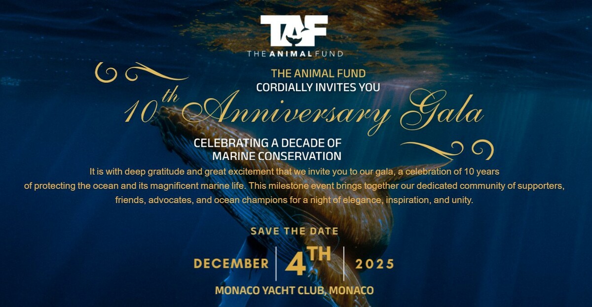 Con profonda gratitudine e grande entusiasmo, TAF – The Animal Fund invita amici, sostenitori e partner a celebrare il suo decimo anniversario durante una serata di gala che si terrà giovedì 4 dicembre 2025, alle ore 19.00, presso il prestigioso Yacht Club de Monaco.