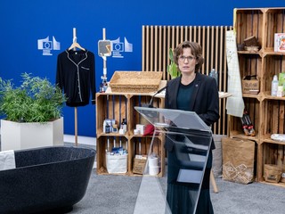 Come anticipato, la sala-conferenze a Bruxelles è stata arredata con prodotti bio-based di uso quotidiano. Dal salotto alla cucina, fino al bagno, giornalisti e ospiti hanno potuto toccare con mano capi d’abbigliamento, articoli per la cura personale, prodotti per la casa e accessori realizzati con materiali sostenibili. E molti di questi erano realizzati in Italia.