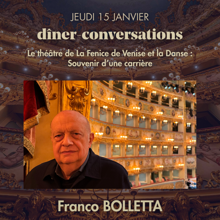 La stagione si apre con un momento d’eccezione: giovedì 15 gennaio, una cena-conversazione con Franco Bolletta sul tema «Il Teatro La Fenice di Venezia e la danza: ricordi di una carriera». Un incontro unico per immergersi nella storia di un luogo mitico della scena culturale europea e nel percorso di una grande figura della scena coreografica.
