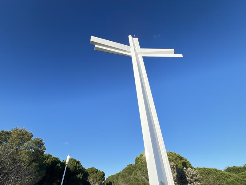 Alta 12 metri e larga 8, la croce originaria in acciaio inox svettava a 164 metri sul livello del mare ed era stata esposta per oltre trent’anni ai venti d’altura.