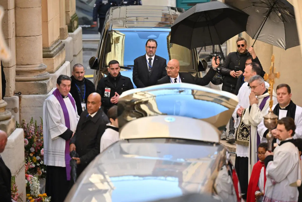 ROMA (ITALPRESS) - Si sono svolti a Saint-Tropez i funerali di Brigitte Bardot, scomparsa il 28 dicembre 2025 all'età di 91 anni. La cerimonia si è svolta nella chiesa Notre-Dame-de-l'Assomption nel cuore della cittadina costiera.La famiglia ha scelto un rito sobrio, alla presenza di parenti, amici e rappresentanti della Brigitte Bardot Foundation per la protezione degli animali, l'organizzazione che l'attrice aveva fondato e sostenuto per decenni. Mentre la cerimonia religiosa è stata privata, la città ha predisposto maxischermi nel porto e nelle piazze affinchè cittadini e ammiratori potessero seguire il rito e rendere omaggio all'attrice. Ad accompagnare l'uscita delle spoglie, Chico, il cantante dei Gipsy Kings, che ha interpretato 'Djobi Djobà. Tra i politici presenti, Marine Le Pen, Nicolas Dupont-Aignan e la ministra per le Pari opportunità, Aurore Bergè. Al termine della cerimonia, si è tenuta una processione dietro al feretro in direzione del cimitero marino di Saint-Tropez, che si affaccia sul mare. -foto Ipa Agency -(ITALPRESS).