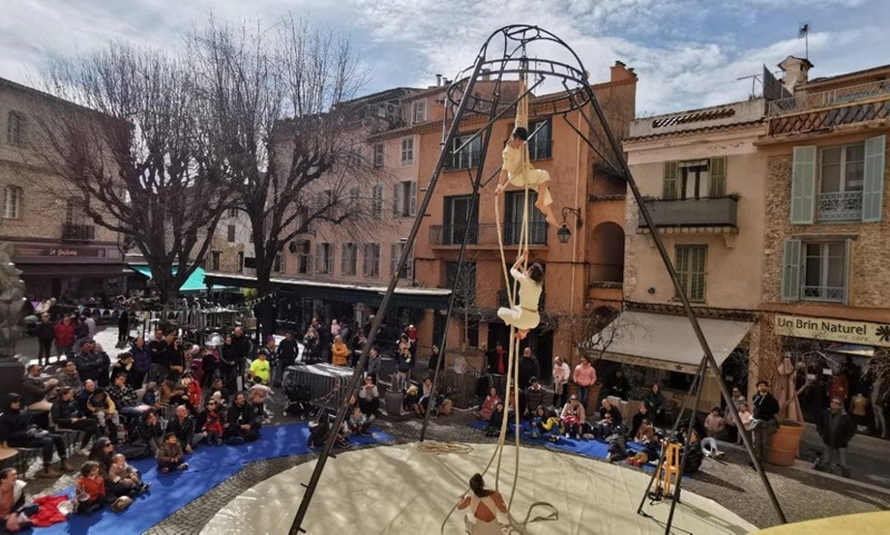 Venerdì 21 febbraio la città si accende di spettacoli e laboratori per tutte le età. In Place Clemenceau, dalle 10 alle 17, spazio a un grande atelier di circo con percorsi acrobatici, giocoleria e prime esperienze al trapezio, accessibile anche ai bambini dai 4 anni. Sempre nella stessa piazza, prende forma una fresca partecipativa gigante ispirata ai paesaggi di Vence, realizzata con pigmenti naturali.
