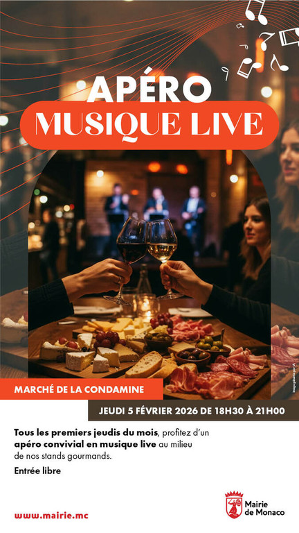 Ogni primo giovedì del mese, il Mercato di Condamine si anima con un aperitivo musicale proposto dal Comune di Monaco. Tra bancarelle di prodotti freschi e stand gastronomici, residenti e visitatori possono trascorrere un momento conviviale in compagnia di amici o in famiglia, accompagnati da musica live.