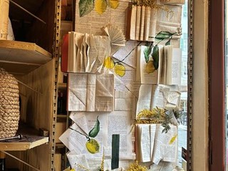 La facciata, classificata monumento storico, conserva il sapore del tempo: vecchie pubblicità di distillati in restauro, un grammofono posato su una botte, oggetti d’epoca che trasformano la vetrina in una scenografia d’altri tempi.