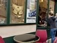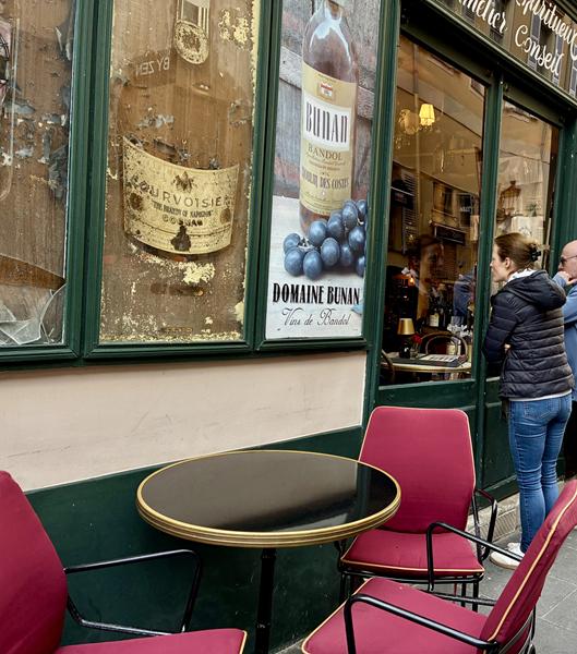 La facciata, classificata monumento storico, conserva il sapore del tempo: vecchie pubblicità di distillati in restauro, un grammofono posato su una botte, oggetti d’epoca che trasformano la vetrina in una scenografia d’altri tempi.