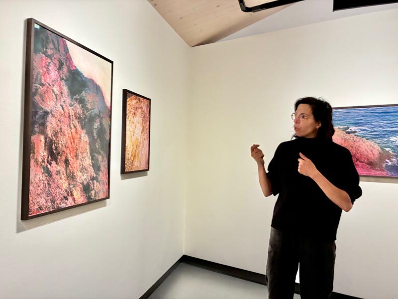 Clara Chichin, bruna, presenta invece le sue fotografie nomadi, realizzate per la mostra nel massiccio dell’Esterel e sulle isole di Lérins. Da nomade, si immerge nella ricerca dell’essenza di rocce e mimose fiorite, utilizzando pellicole scadute e sovrapposizioni di tecniche.