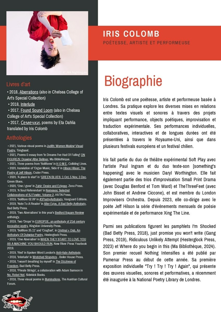 La mattinata, dalle 10 alle 12, sarà dedicata a un atelier di scrittura per adulti guidato dal poeta Tristan Blumel. Il laboratorio, aperto su iscrizione, offrirà ai partecipanti l’opportunità di sperimentare la scrittura poetica; i testi nati durante l’atelier saranno poi presentati al pubblico nel corso delle attività pomeridiane.