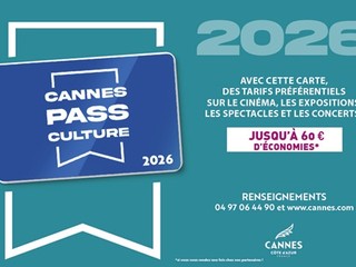 L’iniziativa, promossa dal Comune di Cannes permette di usufruire di sconti su una vasta programmazione che comprende cinema, spettacoli teatrali, concerti, mostre ed eventi culturali organizzati dalle principali istituzioni del territorio.