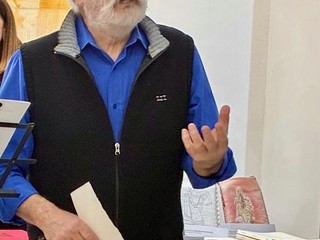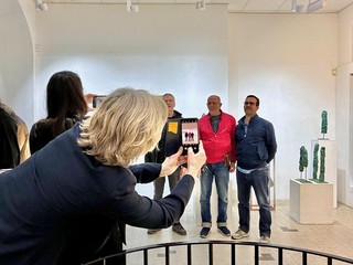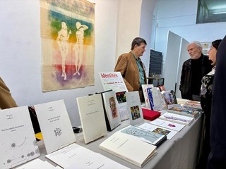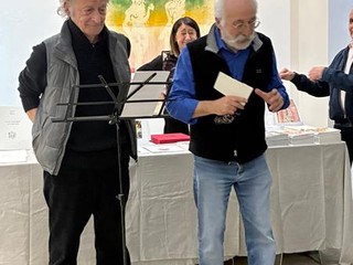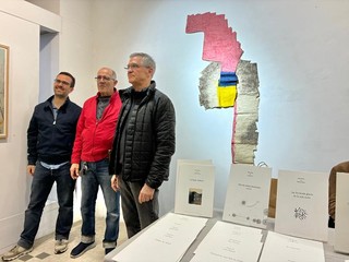 L’evento prevedeva anche la presentazione del suo nuovo libro, un suo disegno originale e l’intervista a un’amica artista, l’unica donna della mostra, Michèle Brondello, di cui sono esposte molte sculture, totem e gruppi di bronzi, e la grande scultura Isis (intarsiata di conchiglie).