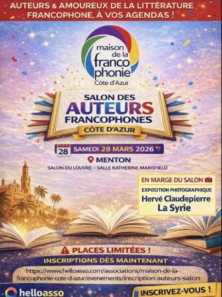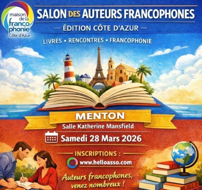 Si terrà sabato 28 marzo 2026, dalle ore 10:00 alle 18:00, presso la Salle Katherine Mansfield (12 avenue Boyer, Espace Salon du Louvre), la prima edizione Costa Azzurra del Salon des Auteurs Francophones, un evento letterario che riunirà autori francofoni di diverse provenienze e generi.