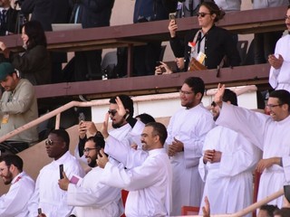 Stadio Louis II del Principato di Monaco gremito per la santa messa celebrata, nel pomeriggio odierno, dal Papa Leone XIV nell’ambito della sua visita pastorale.