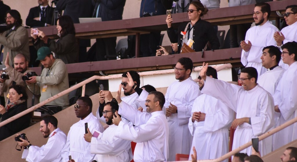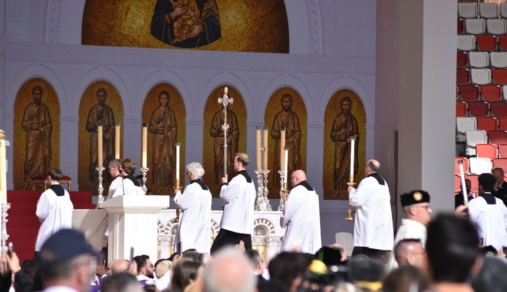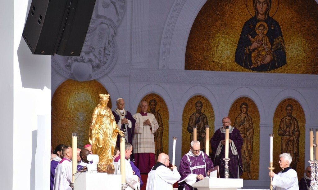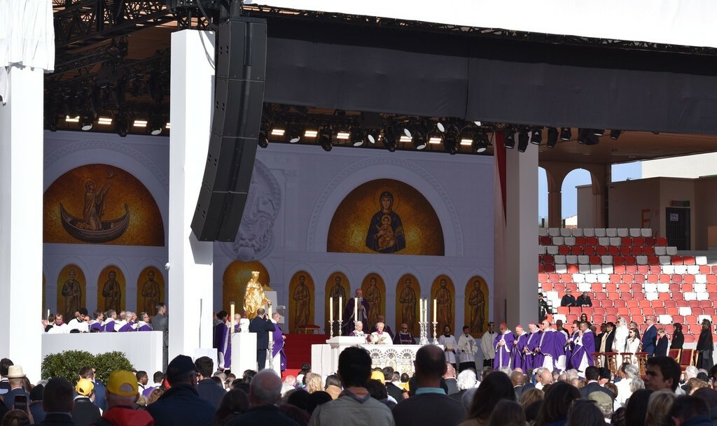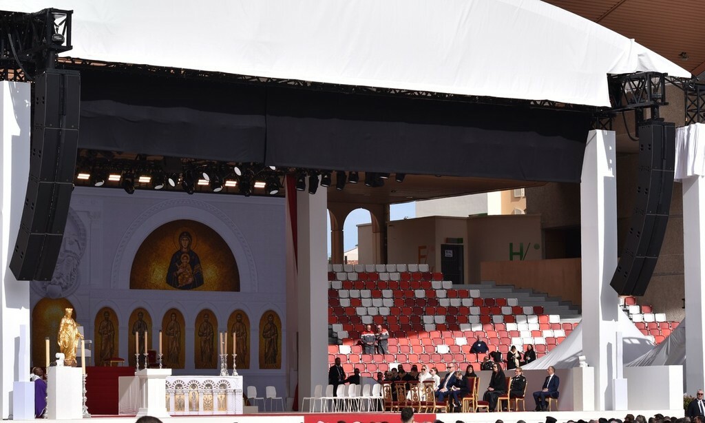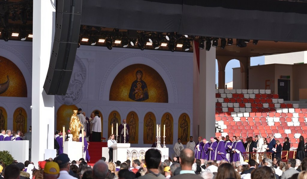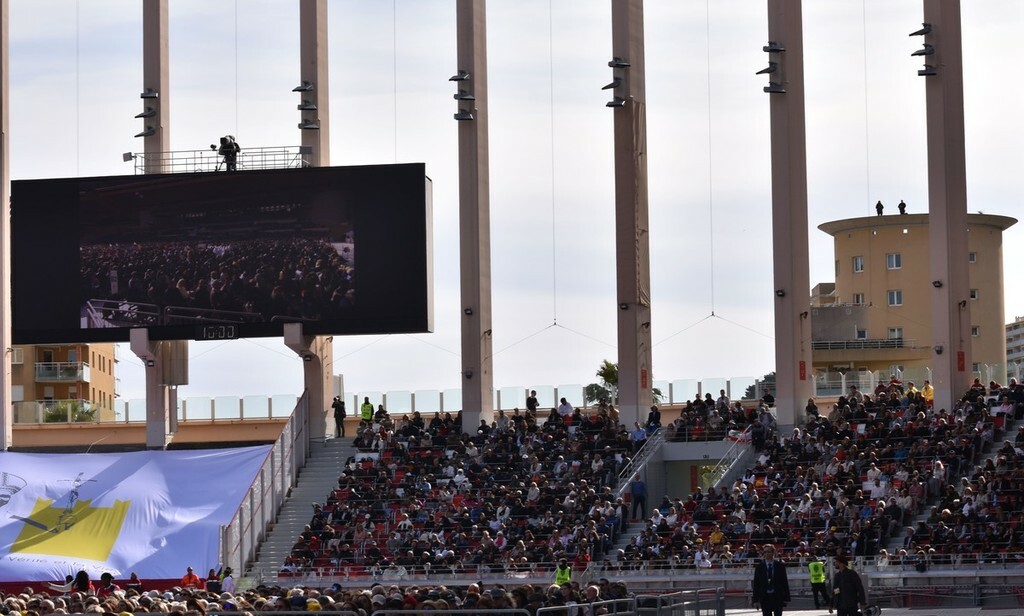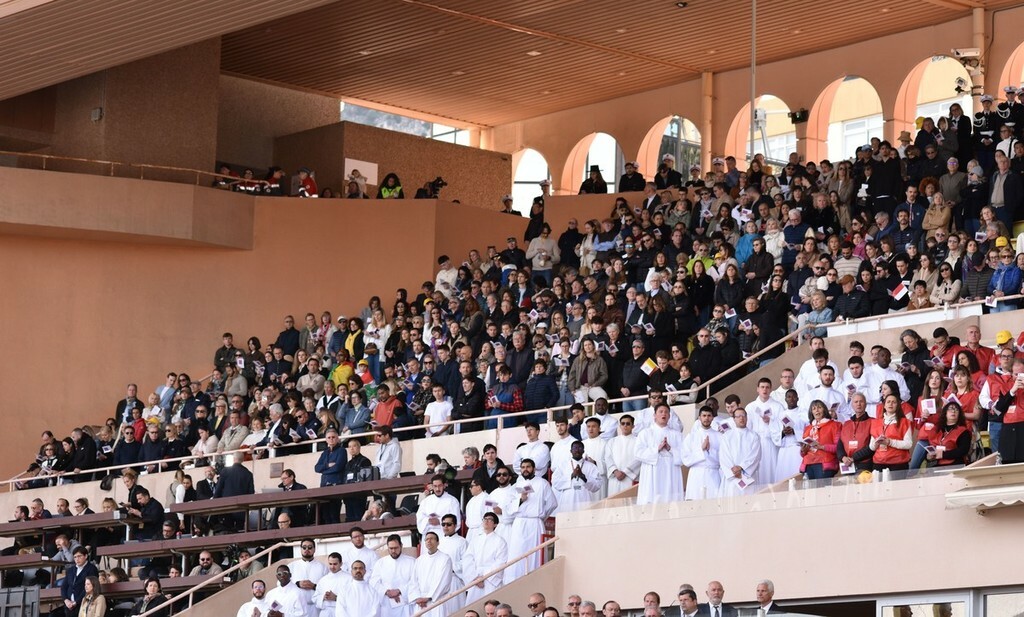 Stadio Louis II del Principato di Monaco gremito per la santa messa celebrata, nel pomeriggio odierno, dal Papa Leone XIV nell’ambito della sua visita pastorale.