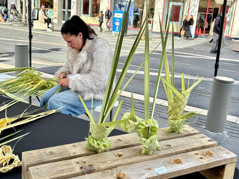 Ogni anno, tra intrecci semplici e composizioni più elaborate, i rameaux diventano anche un piccolo spettacolo visivo: croci, spirali e decorazioni floreali trasformano le foglie di palma in eleganti simboli della festa.