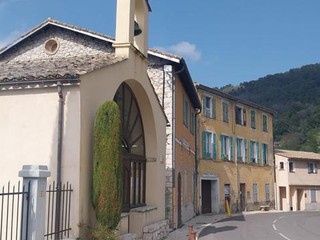 Lo sguardo si estende fino al fondovalle, dove i terreni pianeggianti sono stati recuperati per l’orticoltura, mentre sulla riva destra dell’Estéron si sviluppa un’ampia area boschiva intervallata da uliveti e antichi ovili in pietra.
