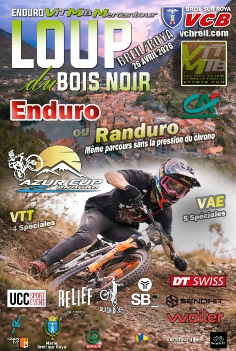 Domenica 26 aprile 2026, dalle ore 09:00 alle 18:00, si svolgerà l’Enduro du Loup du Bois Noir 2026, competizione sportiva dedicata alla mountain bike, in programma presso il Col de Brouis, lungo la RD 2204, a Breil-sur-Roya.