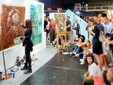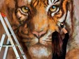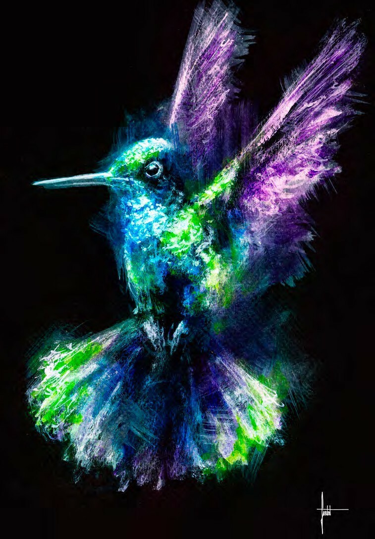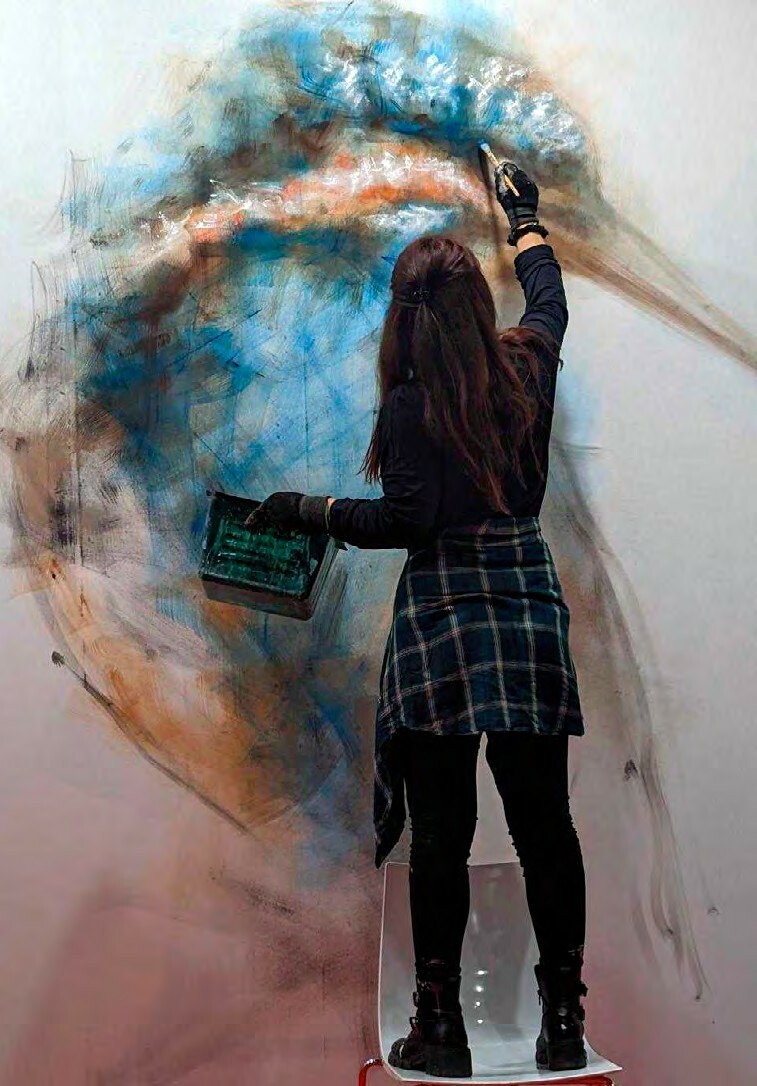 La sua pratica artistica si distingue per un approccio istintivo: ogni opera nasce interamente a mano libera e prende forma davanti agli spettatori, trasformando il processo creativo in una vera e propria performance dal vivo. Un dialogo diretto con il pubblico che rende ogni creazione irripetibile.