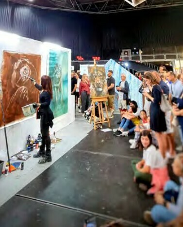 Parallelamente alla produzione pittorica, l’artista realizza performance artistiche dal vivo in contesti di grande prestigio. Tra le sedi che hanno ospitato le sue esibizioni figurano il Zénith di Montpellier, il Carreau du Temple di Parigi, il Museo Parcelle 473, il Congresso Mondiale della Natura a Marsiglia, l’Aquarium de Paris, il Municipio di Lille, l’Opéra di Lille, la Conferenza delle Nazioni Unite sugli Oceani a Nizza e il Museo Nazionale del Rinascimento.