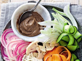 Servite l’anchoïade in una ciotola al centro della tavola con verdure crude tagliate a bastoncino, crackers e fette di pane di campagna leggermente tostato.