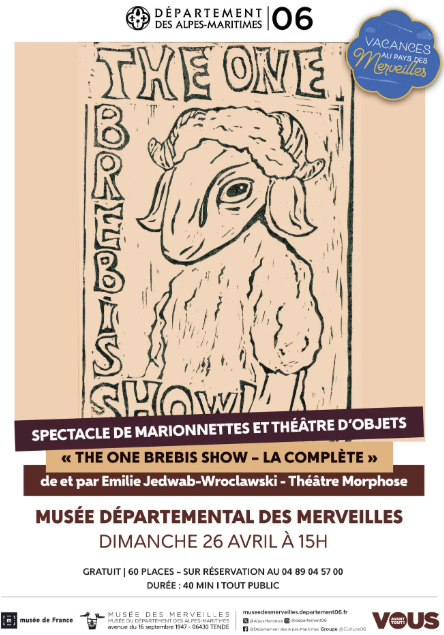 Oggi, domenica 26 aprile, dalle ore 15.00 alle 15.40, il Musée départemental des Merveilles di Tenda, ospiterà “The One Brebis Show – La complète”, uno spettacolo di marionette e teatro d’oggetti. Protagonista dello spettacolo è Clotilde, la pecora più bella della Valle Roya e, senza dubbio, di tutte le valli. Autentica brebis brigasque e profondamente orgogliosa delle proprie origini, Clotilde si presenta come una vera star amata da tutti.