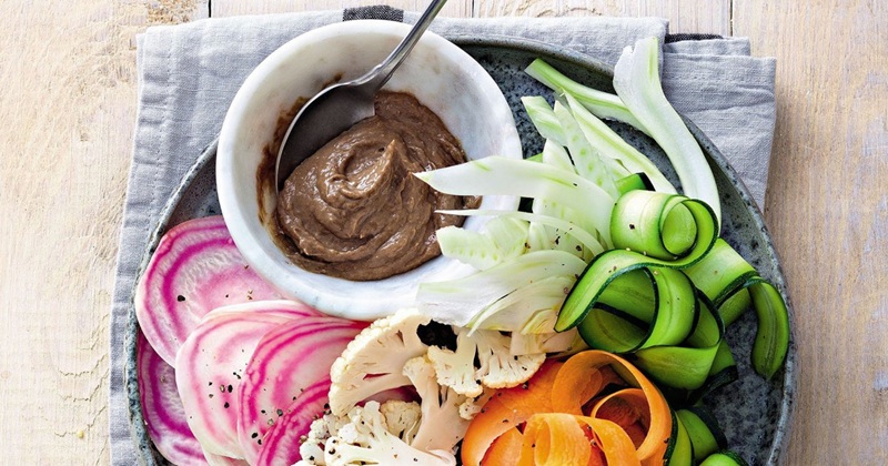 Servite l’anchoïade in una ciotola al centro della tavola con verdure crude tagliate a bastoncino, crackers e fette di pane di campagna leggermente tostato.