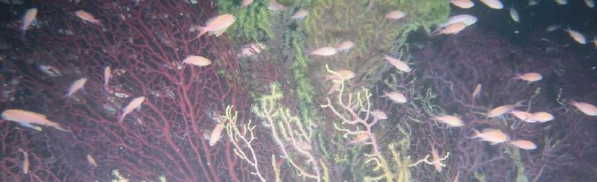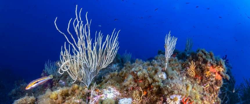 Ecosistema coralligeno osservato durante una precedente campagna RAMOGE (100 m di profondità).